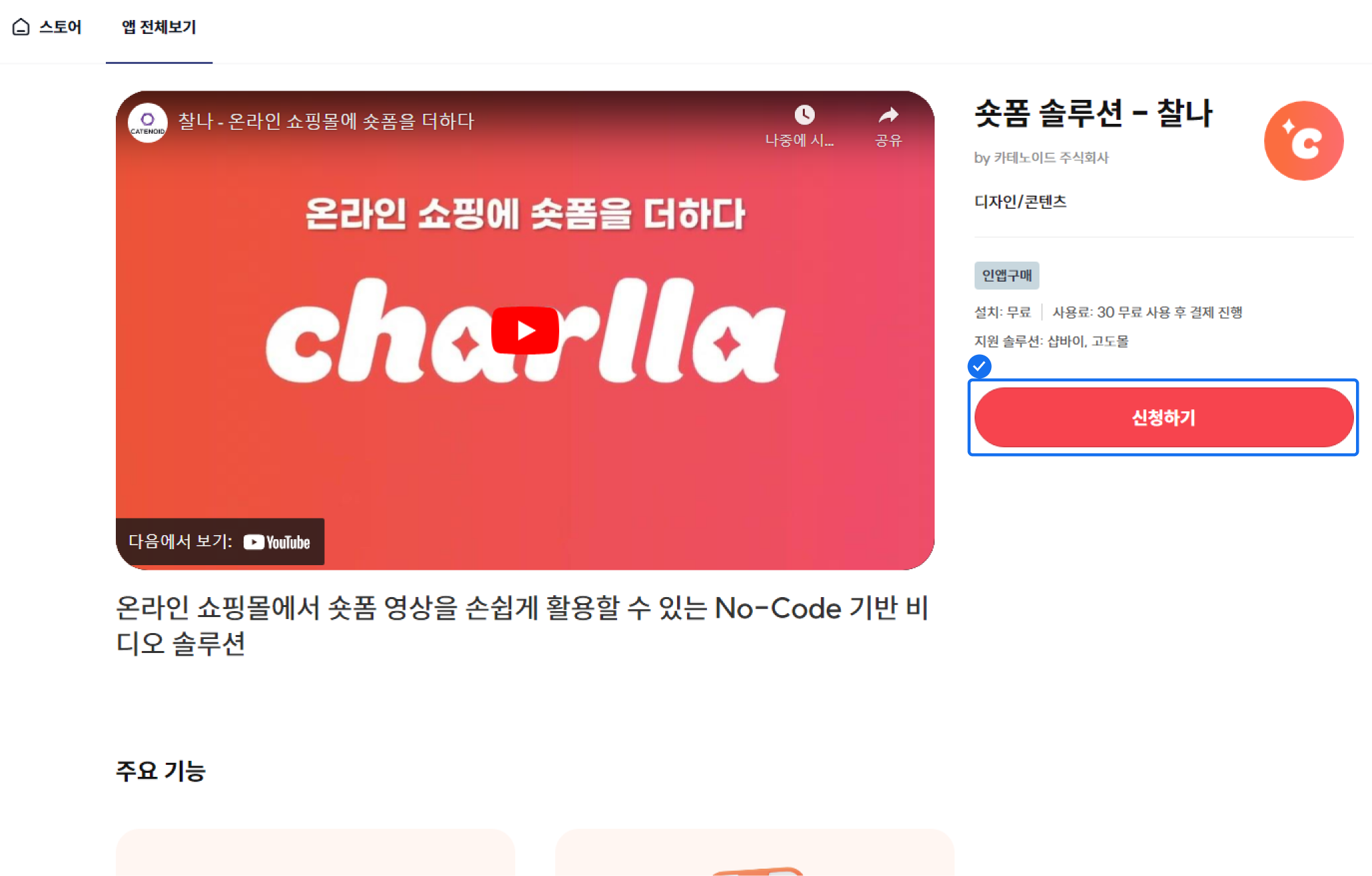 2. '찰나'앱 상세페이지에서 [신청하기] 버튼을 클릭해요.