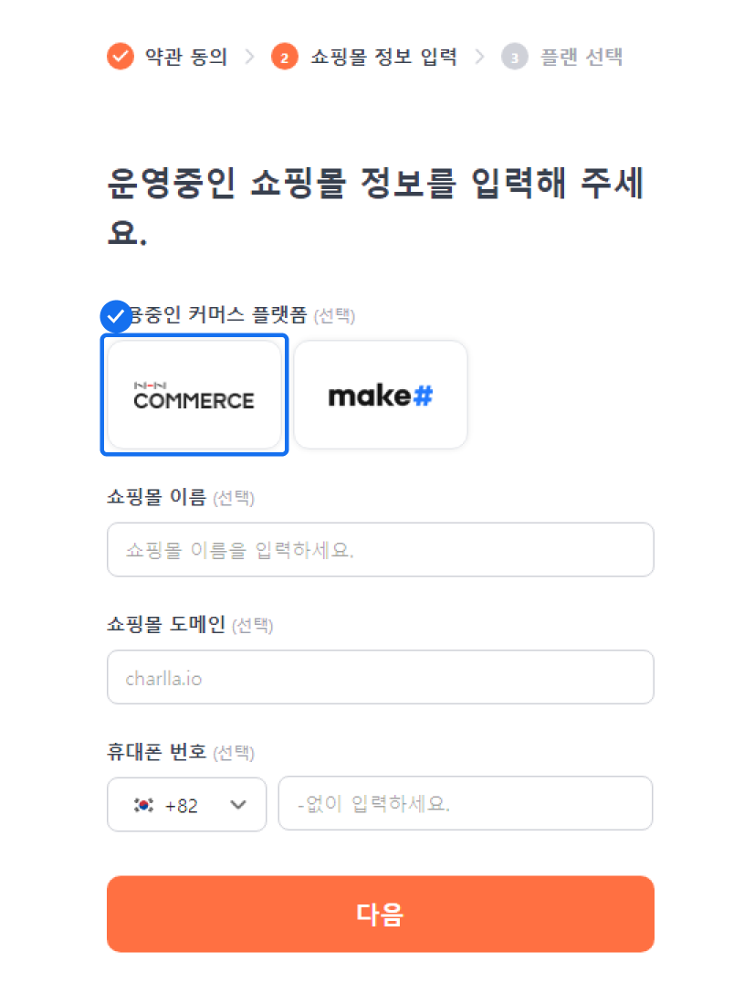 4. 운영 중인 쇼핑몰 정보에서는 NHN 커머스를 선택해 주세요.