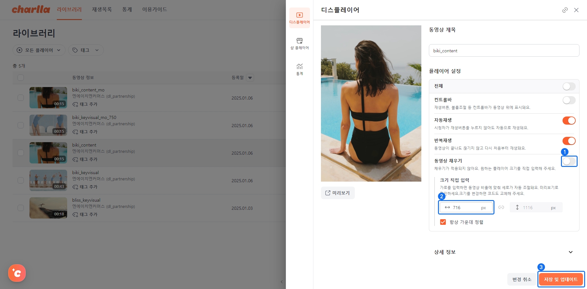 영상이 추가될 배너 사이즈에 맞게 사이즈 크기를 입력해요.