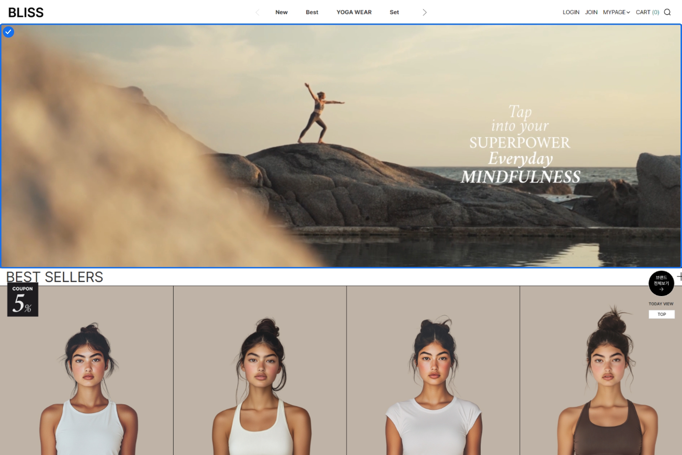 쇼핑몰에서 제일 처음 보여지는 영역에 영상을 추가해요.